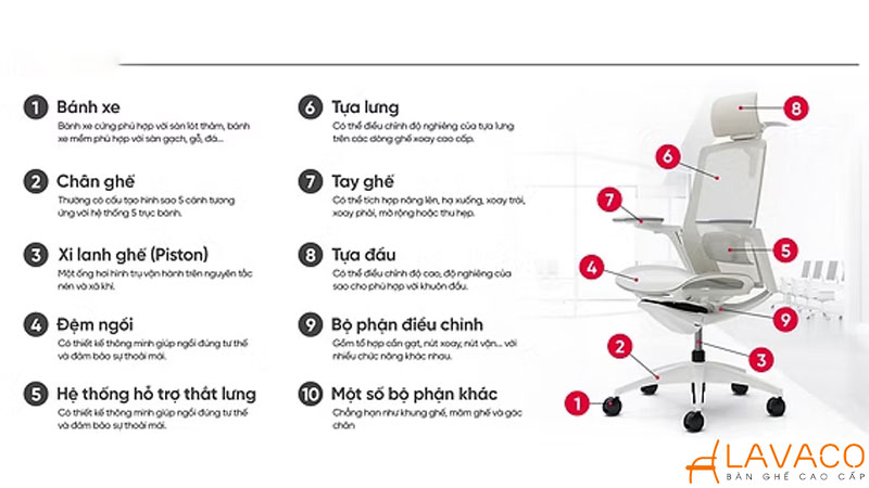 LAVACO là đơn vị chuyên cung cấp các dòng ghế văn phòng như ghế xoay, ghế chân quỳ, ghế lãnh đạo, ghế nhân viên… với mẫu mã đa dạng, đáp ứng tốt nhu cầu từ cá nhân đến doanh nghiệp số lượng lớn. Sản phẩm được chú trọng về chất liệu, độ bền và tính thẩm mỹ, phù hợp với nhiều không gian làm việc.