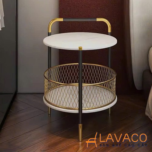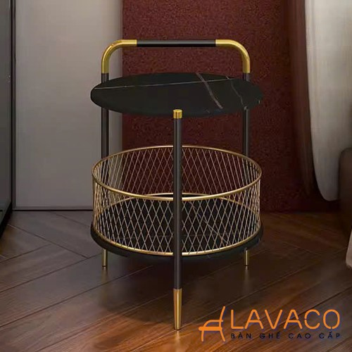 Bàn góc decor phòng khách mặt đá chân sắt hiện đại– Mã: T7518