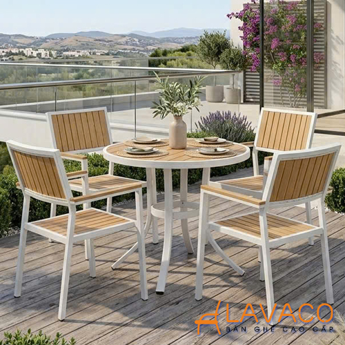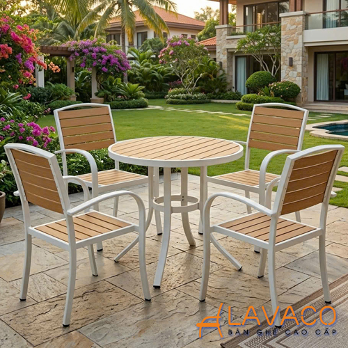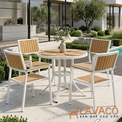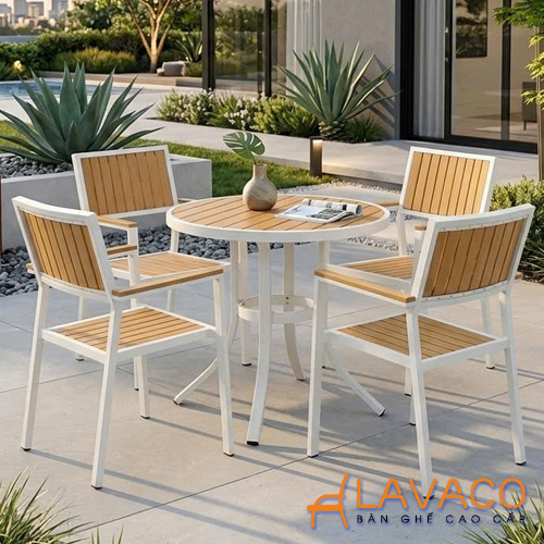 Nếu bạn đang tìm kiếm một mẫu bàn ngoài trời vừa bền bỉ, vừa mang tính thẩm mỹ cao thì bàn tròn sân vườn khung nhôm mặt nhựa giả gỗ màu trắng từ Nội thất Lavaco chính là gợi ý hoàn hảo. Với thiết kế hiện đại, tinh gọn và dễ ứng dụng, sản phẩm không chỉ đáp ứng nhu cầu sử dụng mà còn góp phần nâng tầm không gian sống và kinh doanh.