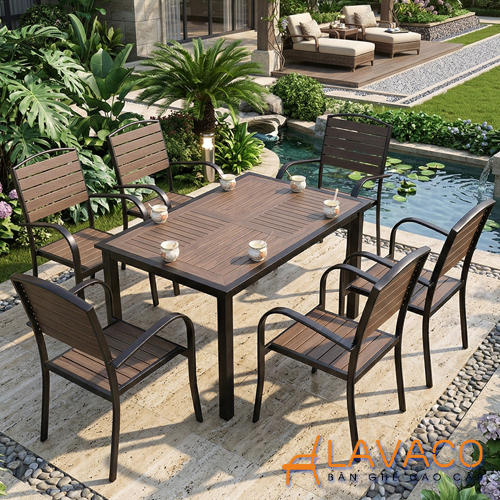 - Bộ bàn ghế ngoài trời nhựa composite giả gỗ- Mã: T1916-6x2804N