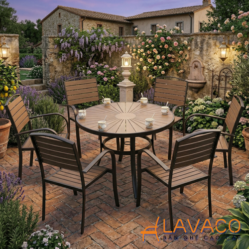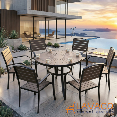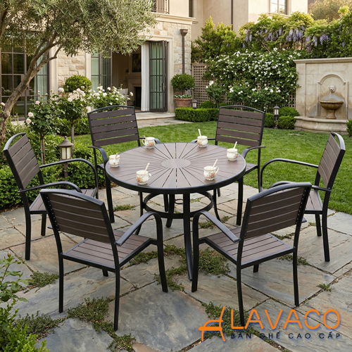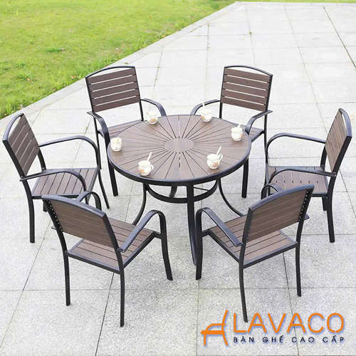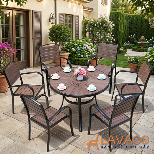 Bộ bàn sân vườn biệt thự gỗ nhựa hiện đại- Mã: T1915-6x2804N
