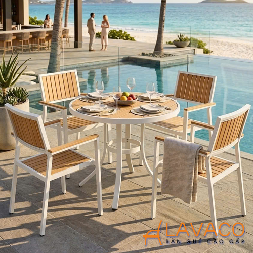 Bộ bàn tròn sân vườn biệt thự hiện đại – Tinh tế, gọn gàng cho không gian ngoài trời