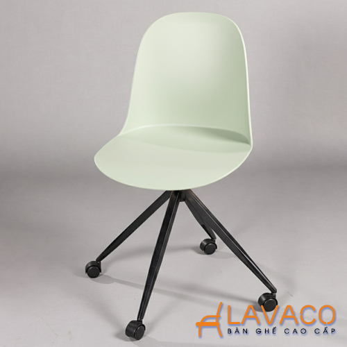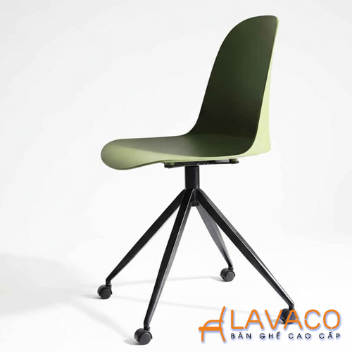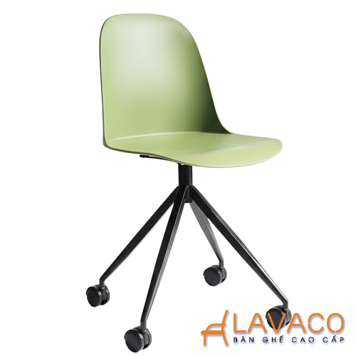 • Chất liệu: Lưng nhựa PP đúc, chân thép sơn tĩnh điện xoay tròn 360 độ, có bánh xe.