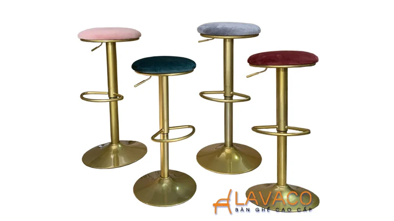 Mẫu ghế 474A là lựa chọn hoàn hảo nếu bạn đang tìm kiếm một sản phẩm mang lại điểm nhấn sang trọng cho không gian. Phần nệm ngồi bọc nhung mềm mại kết hợp chân thép mạ vàng tạo cảm giác cao cấp và thời thượng. Thiết kế tròn tinh tế, màu sắc bắt mắt như đỏ, hồng, xám, xanh dương khiến sản phẩm trở nên nổi bật trong mọi không gian bar, spa hoặc quán cafe cao cấp.