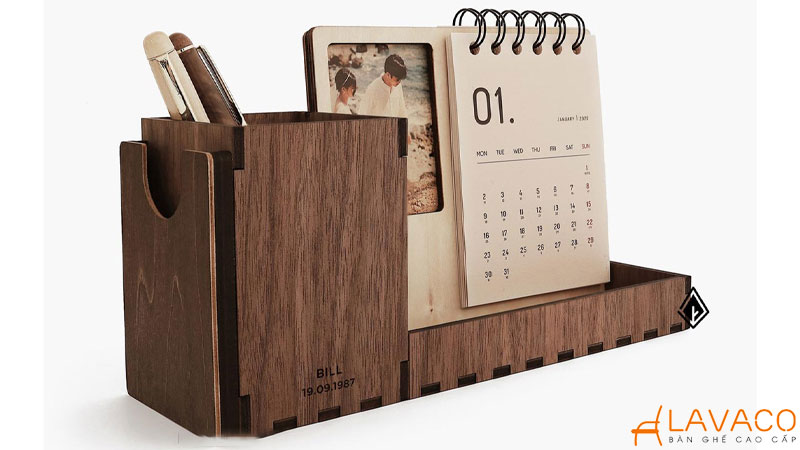 Khung ảnh kết hợp với hộp đựng bút, ngăn kẹp giấy hay giá để danh thiếp là lựa chọn rất thông minh cho bàn làm việc. Thiết kế này vừa có tính thẩm mỹ, vừa hỗ trợ lưu trữ các vật dụng nhỏ gọn, giúp không gian ngăn nắp và tiện lợi hơn. Đây là kiểu khung phù hợp cho những ai thích sự gọn gàng, đề cao tính ứng dụng nhưng vẫn muốn bàn làm việc mang dấu ấn cá nhân.