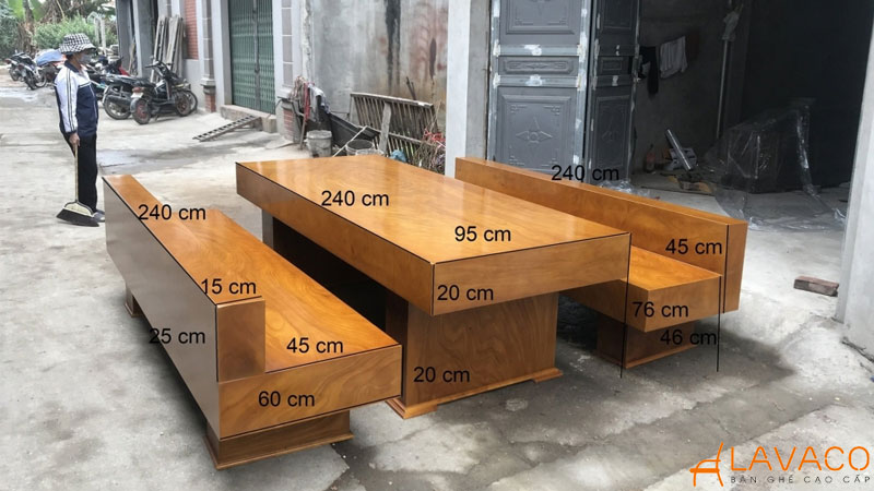 Ngược lại, nếu bàn được thiết kế với chân gỗ đặc hoặc băng ghế nguyên khối, mặt bàn dày từ 10cm đến 15cm, thậm chí dày hơn, sẽ giúp tổng thể trở nên cân xứng, bề thế và chắc chắn hơn. Việc lựa chọn đúng độ dày không chỉ đảm bảo khả năng chịu lực mà còn góp phần tôn lên vẻ đẹp tự nhiên của vân gỗ, giúp bộ bàn ghế K3 hài hòa với phong cách nội thất chung của không gian.